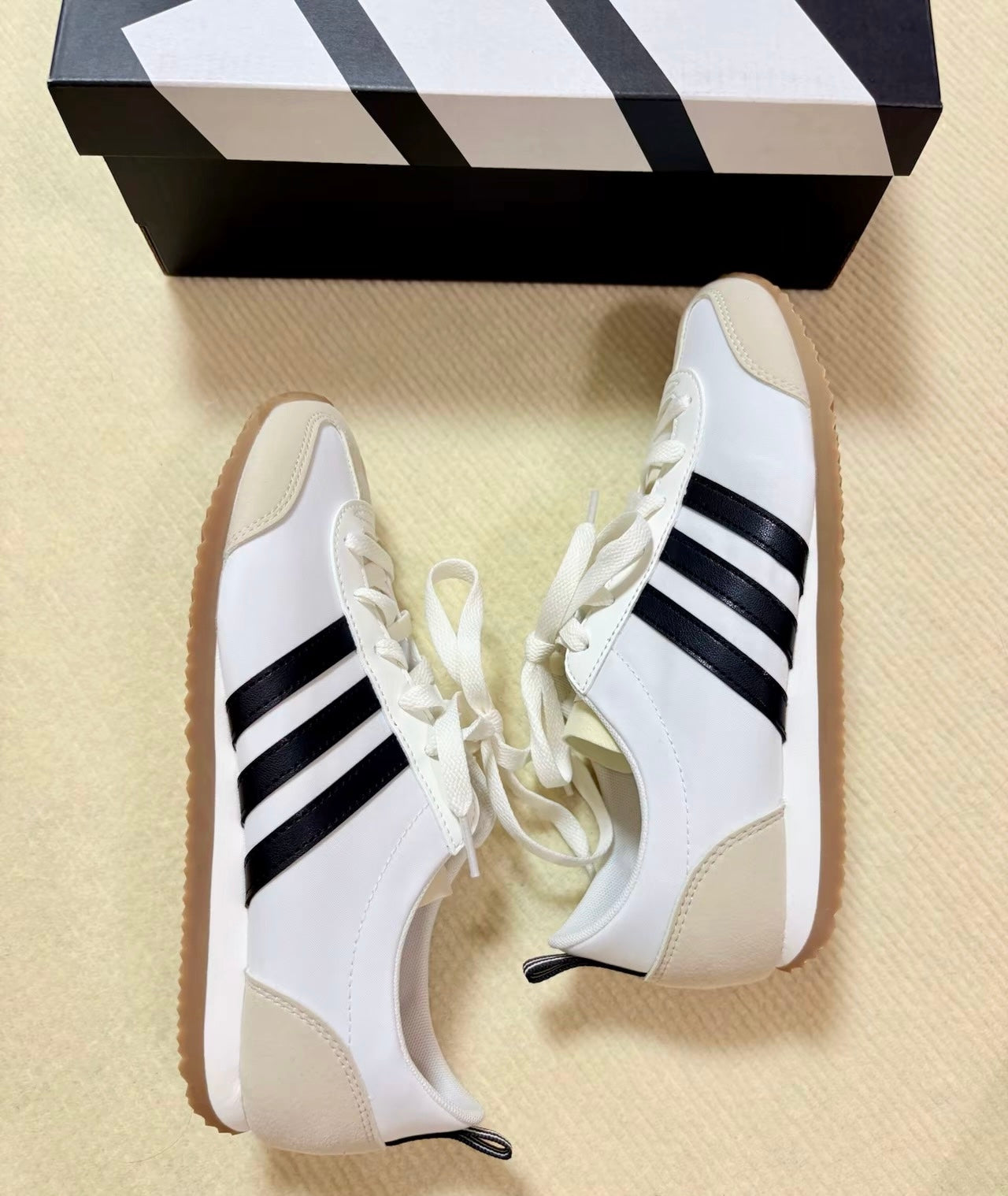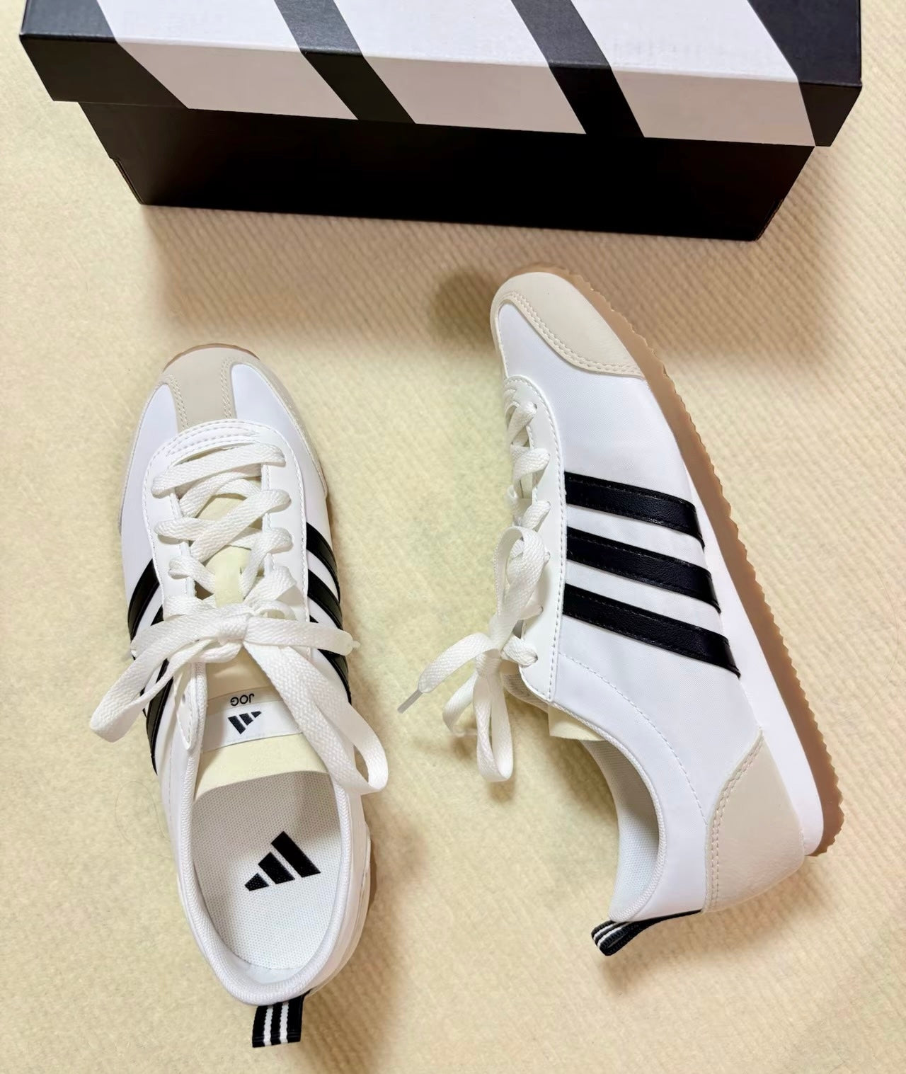 A: 鞋因生產製造工藝不同,可能出現溢膠、自然褶皺、線頭、非完全對稱等現象,屬於正常現象。